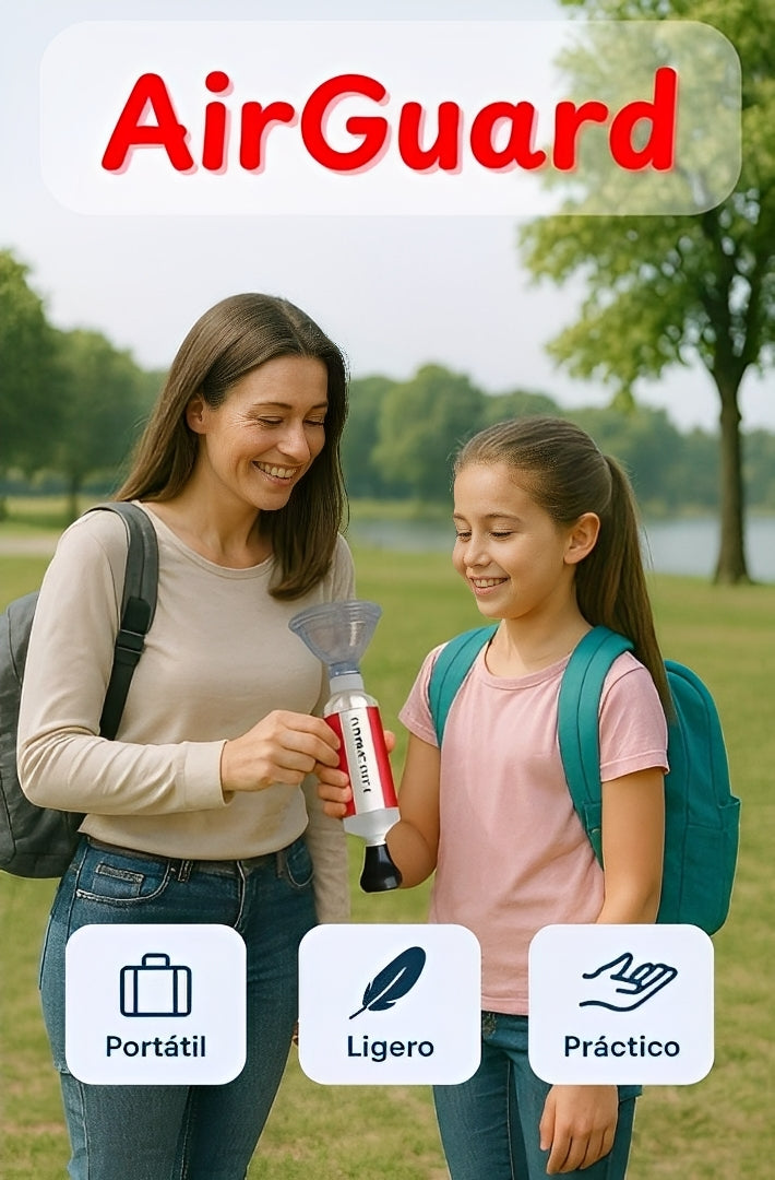 No importa si estás en casa, en la escuela o de viaje: con AirGuard, estarás listo para actuar de inmediato ante cualquier situación de asfixia. Saber que tienes un dispositivo confiable a mano reduce el estrés y la ansiedad ante emergencias, permitiéndote mantener la calma y tomar decisiones rápidas.