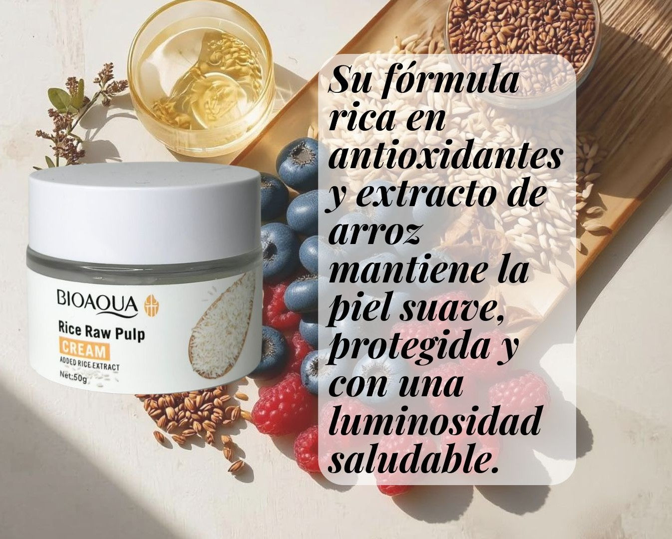 La Crema Facial BioAqua sella la hidratación y forma una barrera protectora contra los agentes externos. Su fórmula rica en antioxidantes y extracto de arroz mantiene la piel suave, protegida y con una