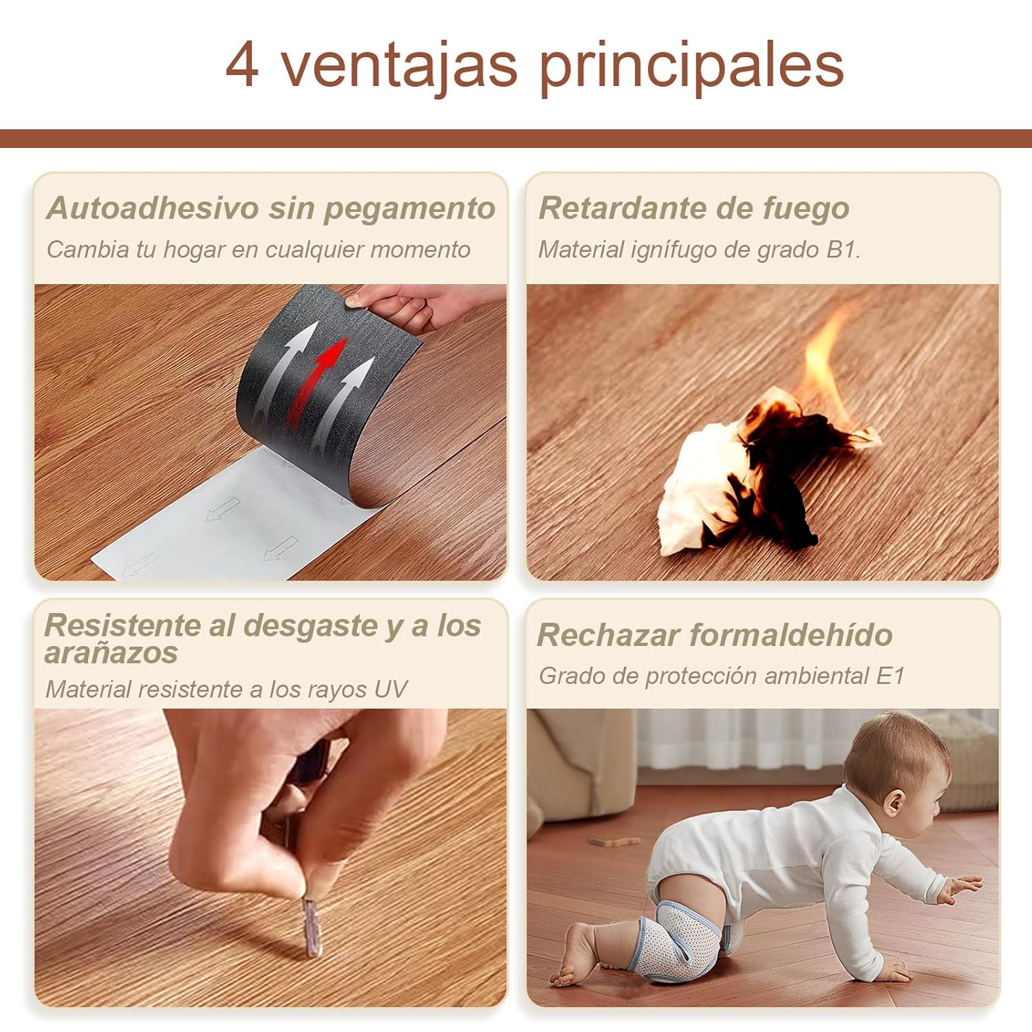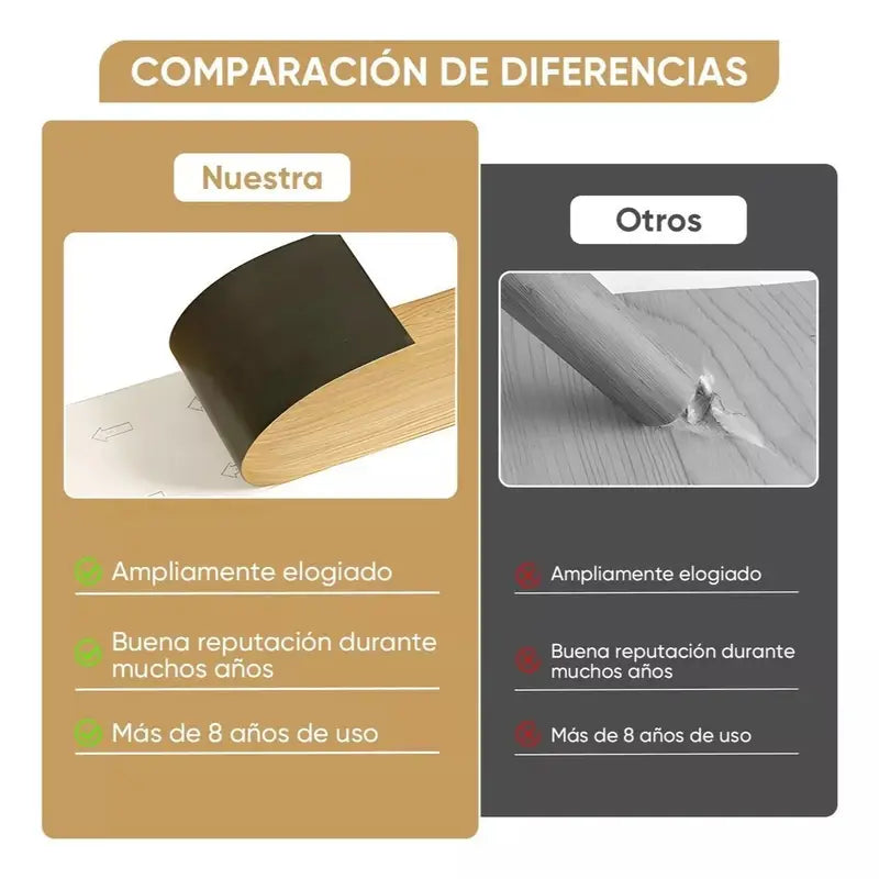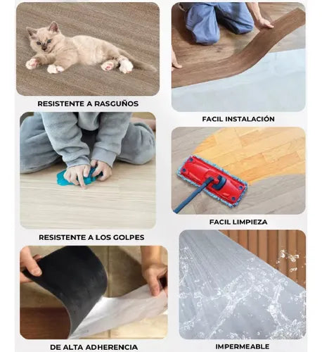 ¡Súper fácil! No necesitas pegamento, clavos ni herramientas.Solo despegas el protector y lo pegas sobre el piso limpio. ¡Ideal para hacerlo tú mismo en minutos!