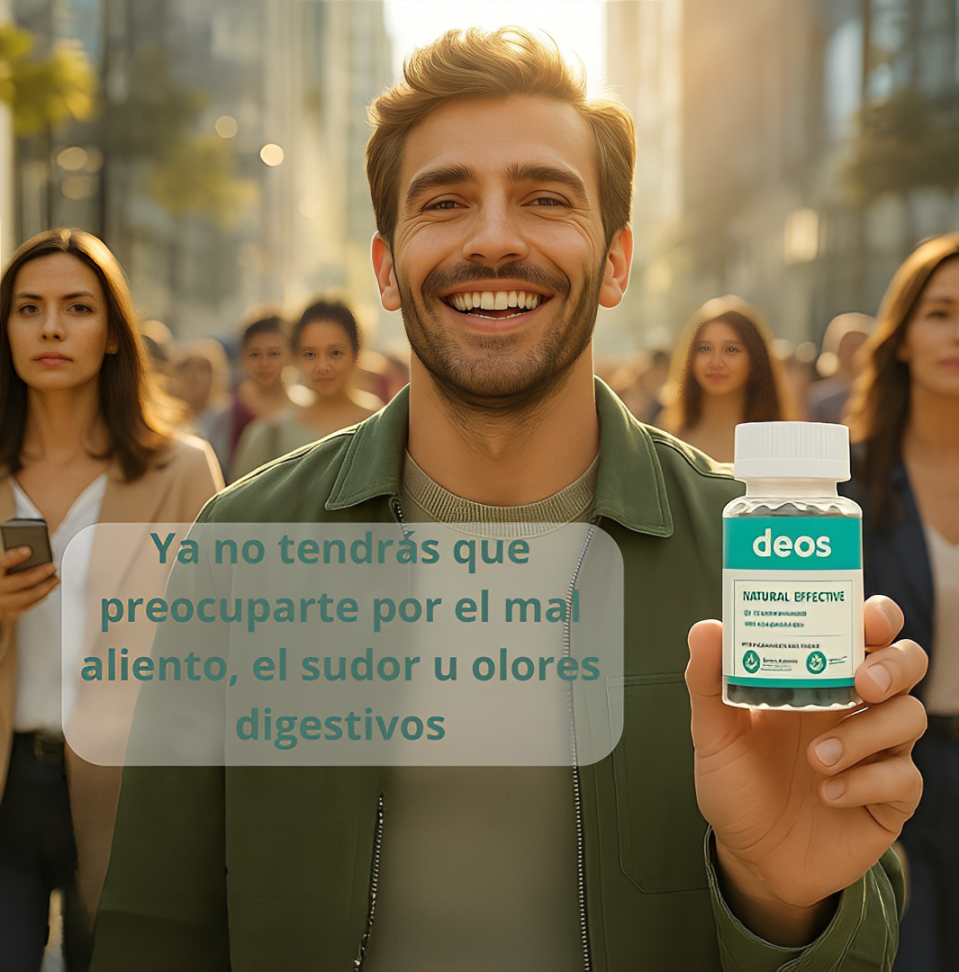 Desde que comencé a tomar DEOS, he notado una diferencia enorme: mi aliento es más fresco, ya no me preocupar por el sudor fuerte y finalmente siento que huelo bien todo el día.