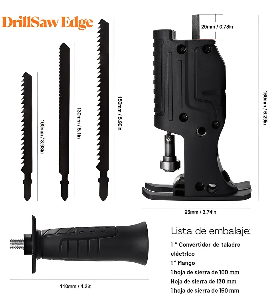 Transforma tu taladro eléctrico en una potente sierra caladora portátil en cuestión de segundos. Con DrillSaw Edge, podrás cortar, perforar y moldear con precisión y rapidez sin necesidad de comprar otra herramienta. Ideal para quienes buscan versatilidad, comodidad y resultados profesionales en cada proyecto.