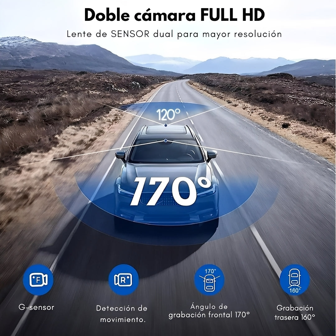 La DualCam Pro incluye G-sensor integrado y detección de movimiento, lo que significa que tu cámara graba automáticamente ante cualquier impacto o movimiento sospechoso. Esto protege tus videos frente accidentes y te asegura tener evidencia confiable cuando más la necesitas. Perfecto para situaciones inesperadas en la calle o estacionamiento.