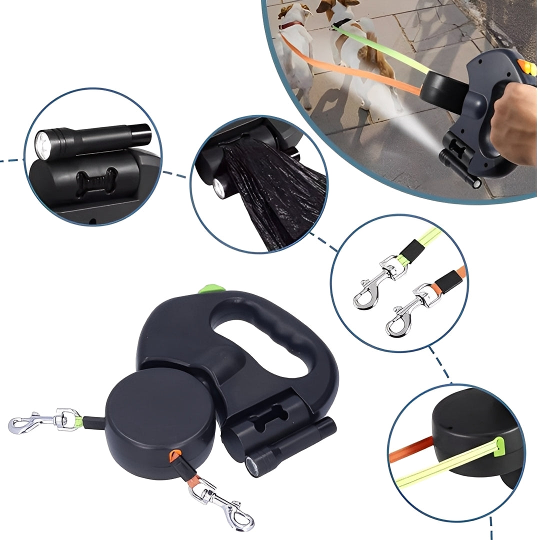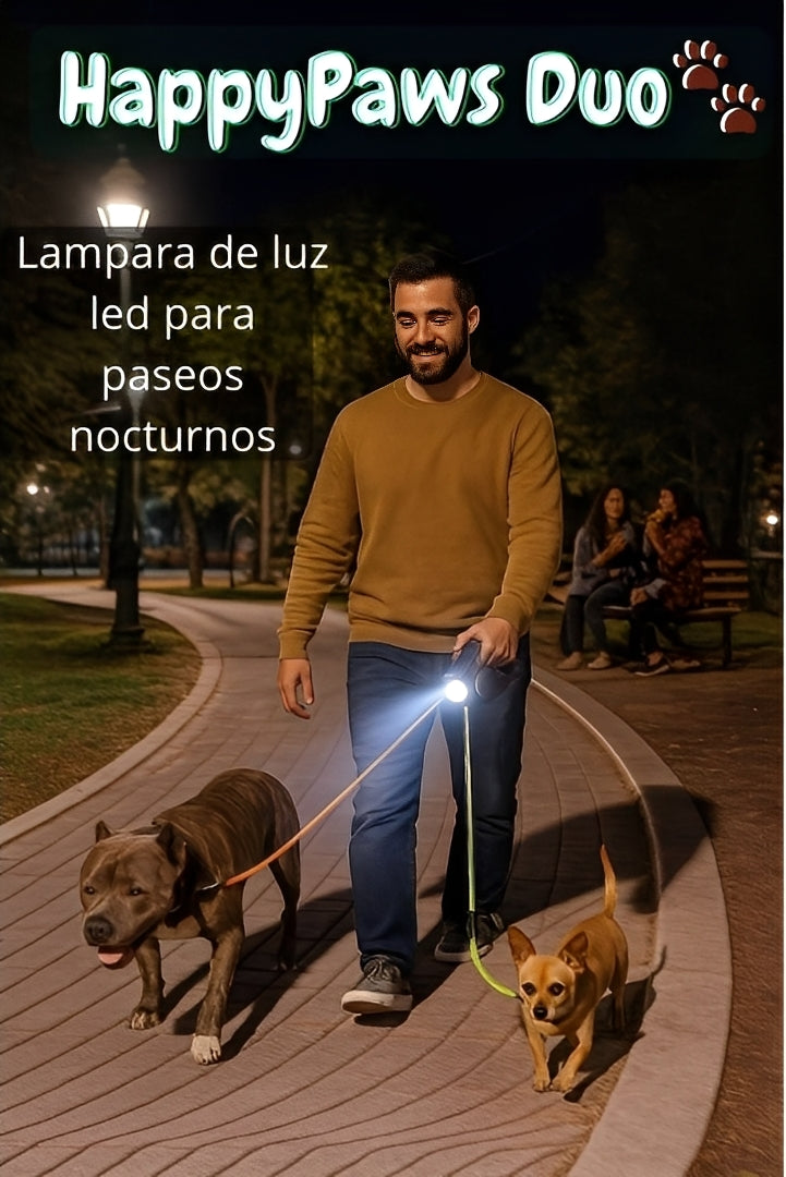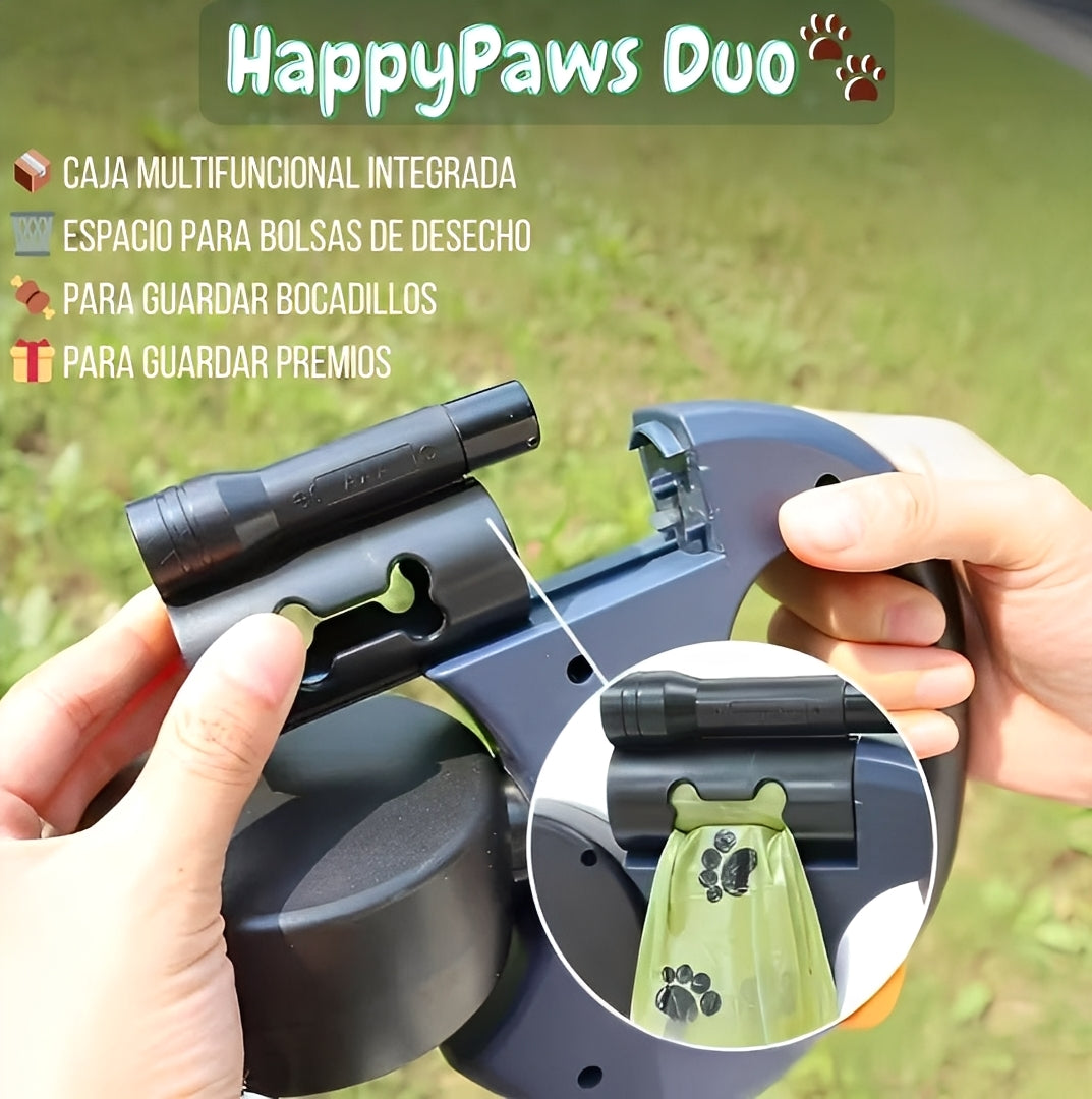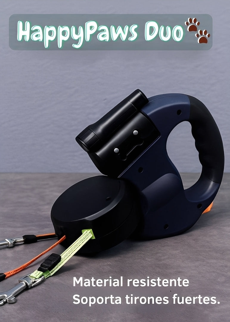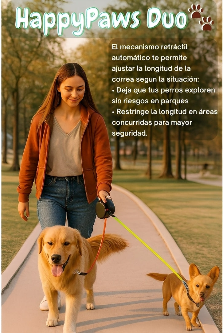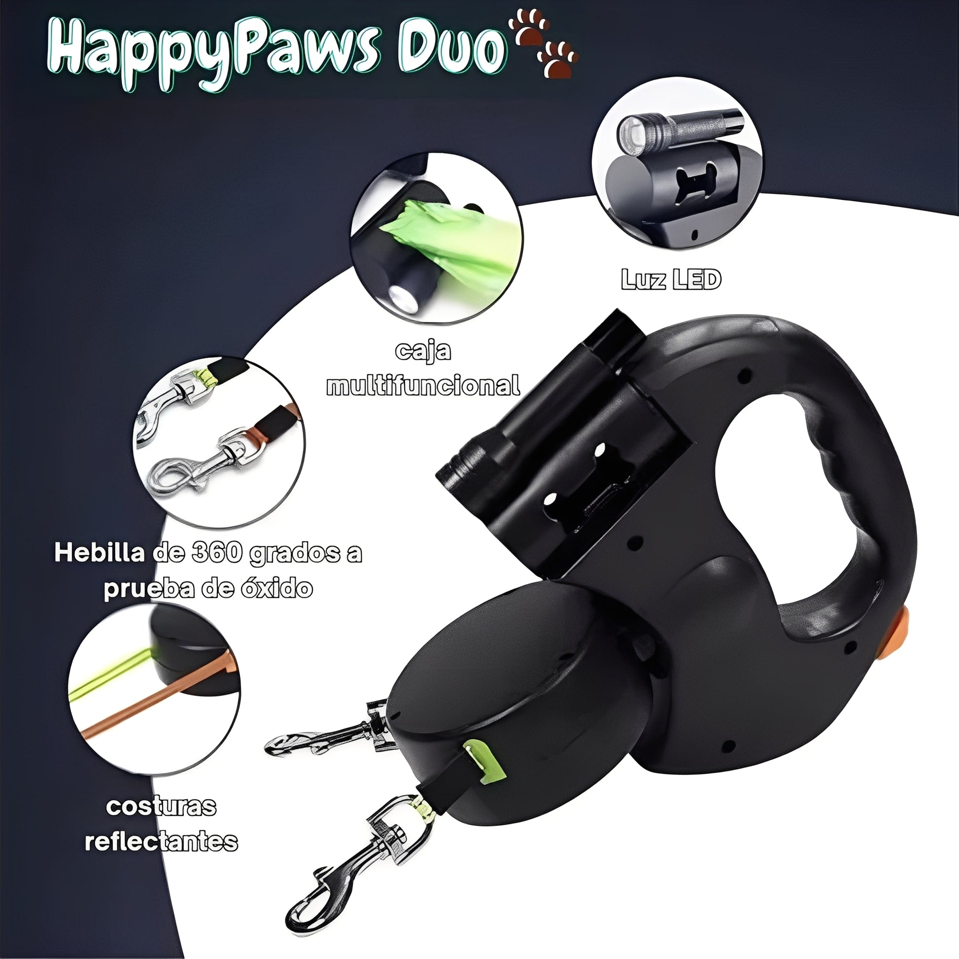 HappyPaws Duo, Correa Doble Retráctil ParaPerros 🐾🐾