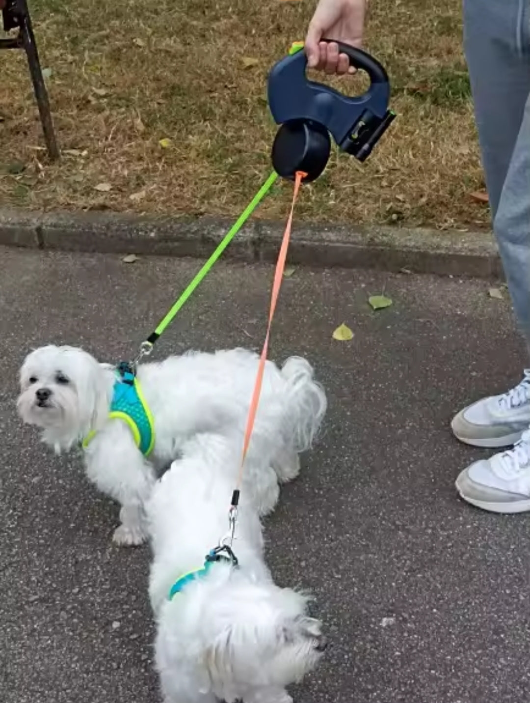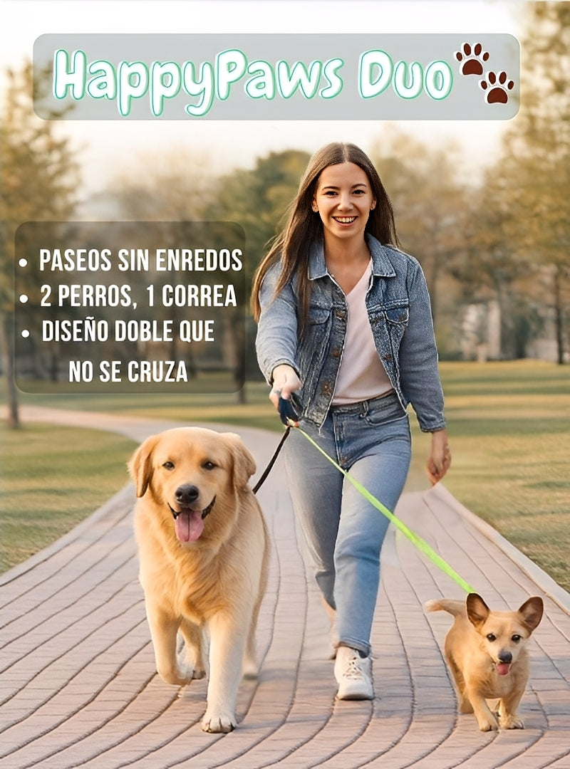 ¿Te cuesta controlar a tus dos perritos durante los paseos? 😫 Entre correas enredadas y tirones inesperados, salir a caminar puede ser un estrés. ¡Con HappyPaws Duo esto ya no será un problema! 🐶🐶 Nuestra correa doble retráctil te permite pasear a tus mascotas de manera cómoda, segura y divertida, dejando que exploren mientras tú mantienes el control.