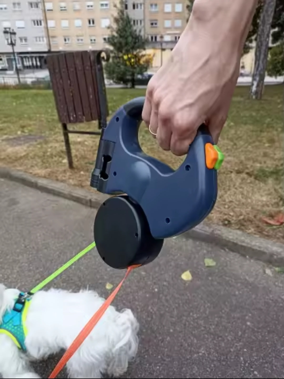 El mecanismo retráctil automático te permite ajustar la longitud de la correa según la situación: deja que tus perros exploren sin riesgos en parques o restringe la longitud en áreas concurridas para mayor seguridad. Todo esto se logra sin esfuerzo, evitando que tengas que estar constantemente tirando de la correa. 🏞️