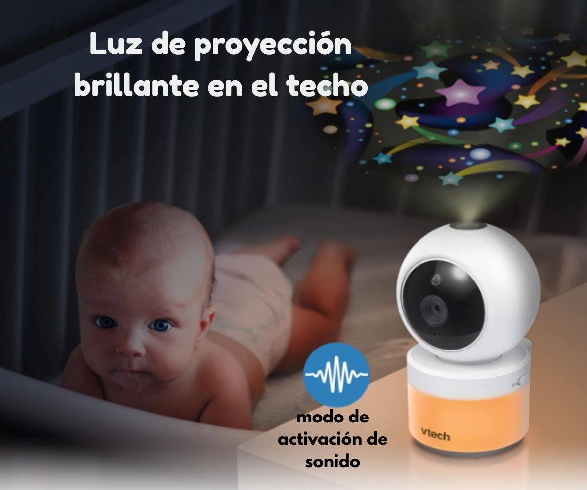 La pantalla se enciende automáticamente cuando detecta ruido, para que puedas descansar sin distracciones y aún así responder cuando tu bebé te necesite.👶